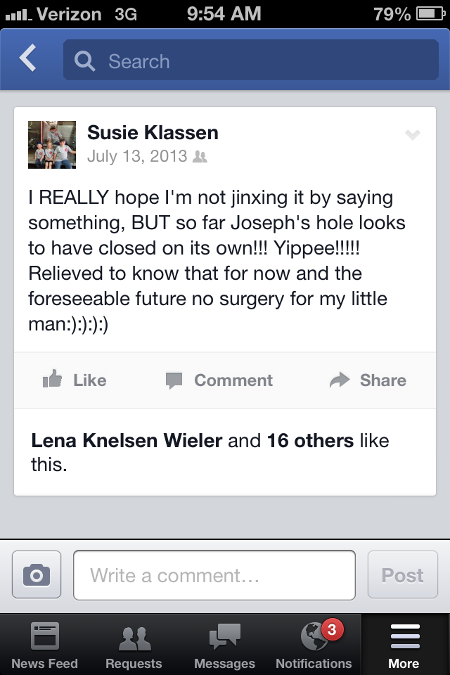 He had to have his G-Tube site surgically closed😔 this ended our 21 month stretch of being hospital stay free😔